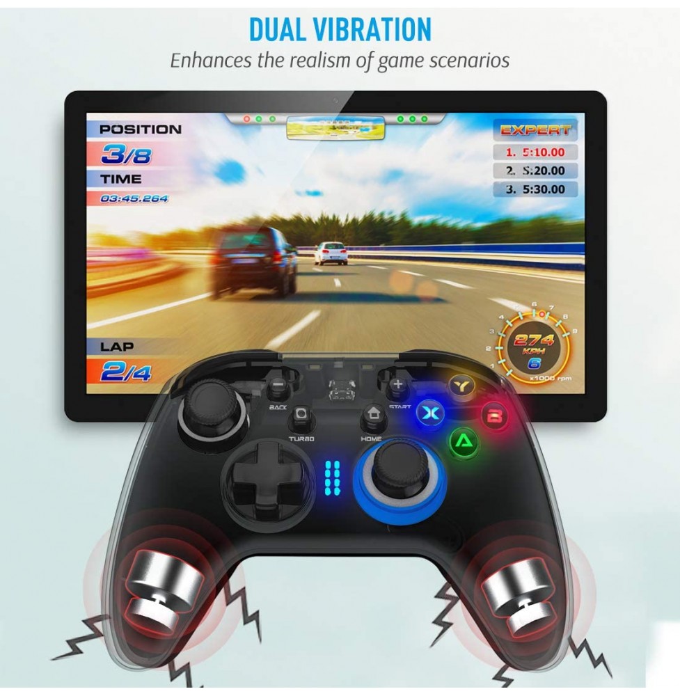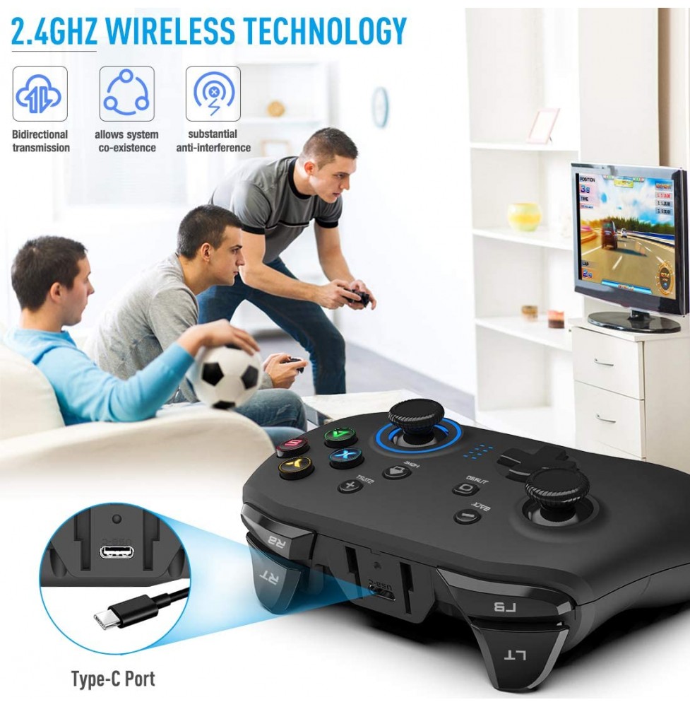 Forty4 Wireless Gaming Controller, Dual-Vibration Joystick Gamepad Computer Game Controller for PC Windows 7/8/10, PS3, Switch- Black