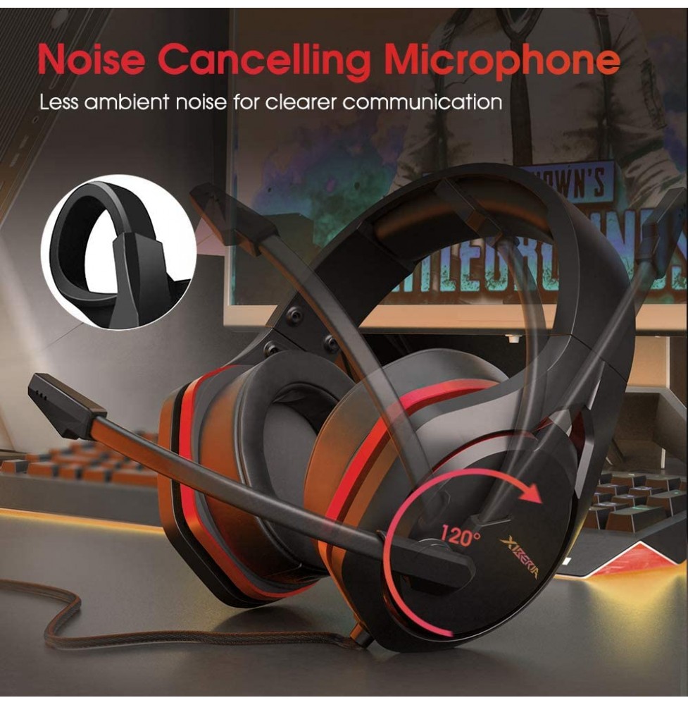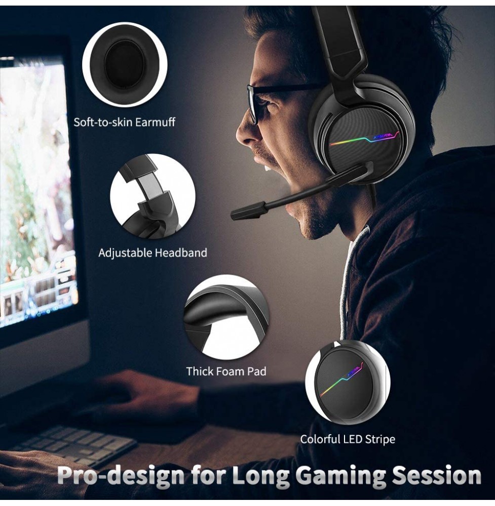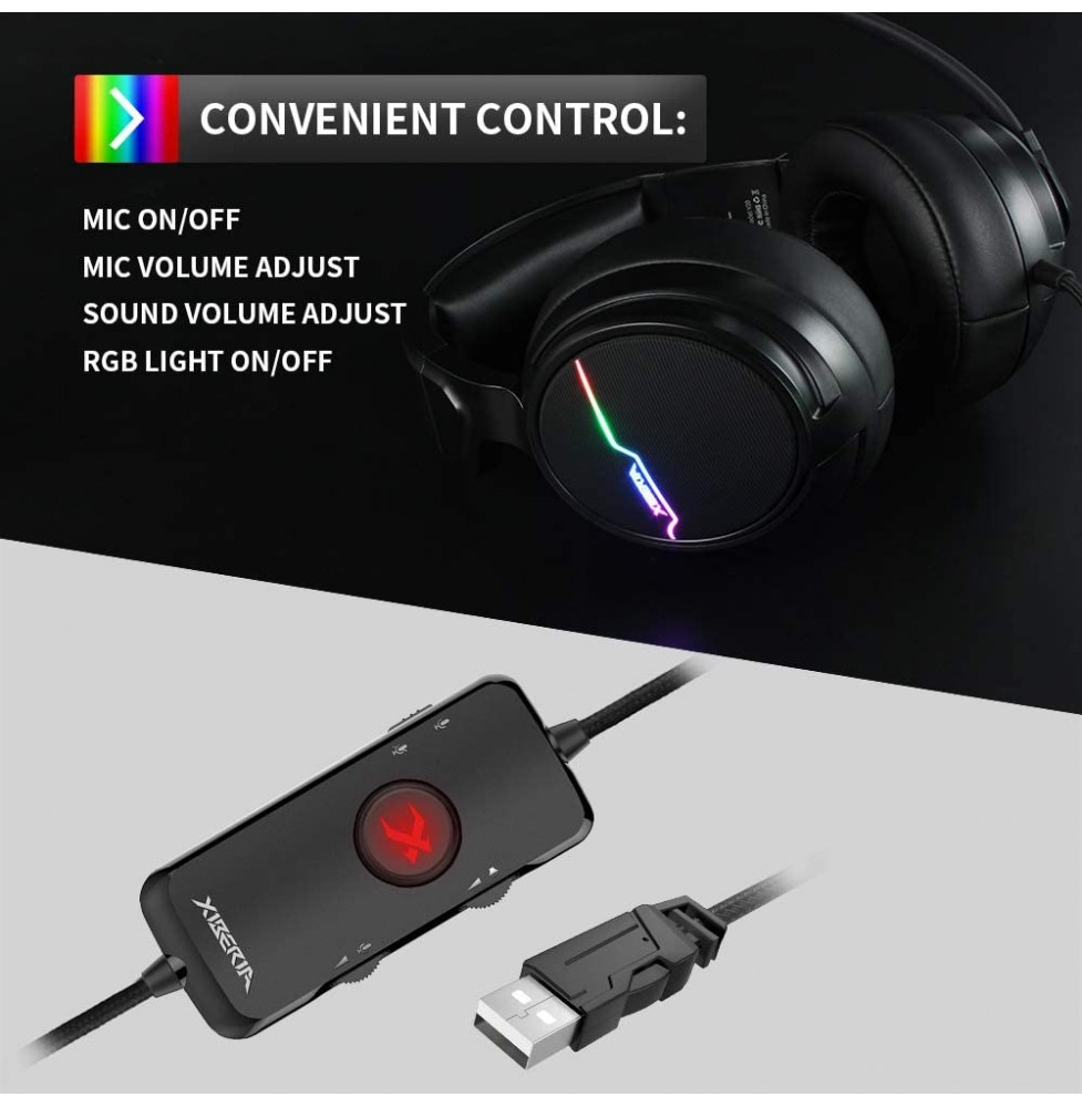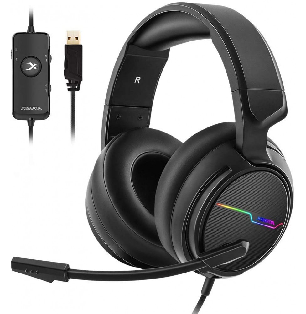 Jeecoo Xiberia USB Pro Gaming Headset for PC- 7.1 Surround Sound Headphones with Noise Cancelling Microphone- Memory Foam Ear Pads RGB Lights for Laptops