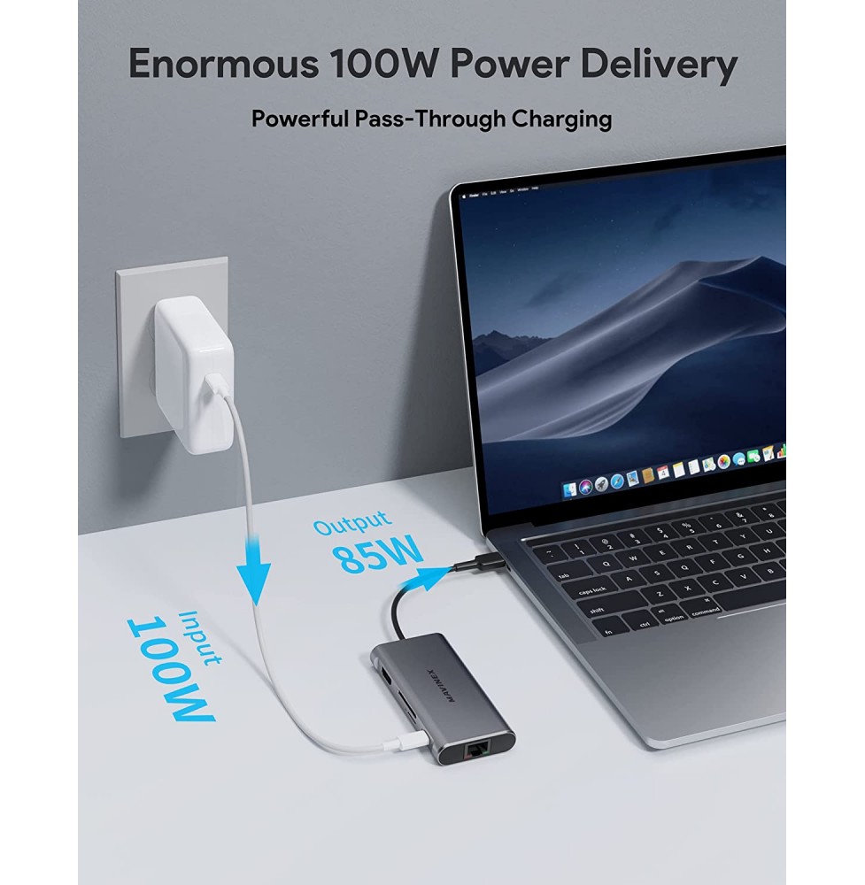 USB C Hub 9 in 1, MAVINEX USB C Adapter 4K to HDMI, 100W Power Delivery, 5Gbps USB-C Data Port, 3 USB 3.0 Ports, MicroSD/TF, 1Gbps Ethernet Docking Station for MacBook, Dell XPS, More Type C Devices